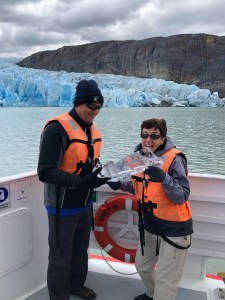 At Greys Lake we walked for 25 minutes across a dried river bed/lake to a boat for a 3 hour tour of the lake, icebergs and glaciers.