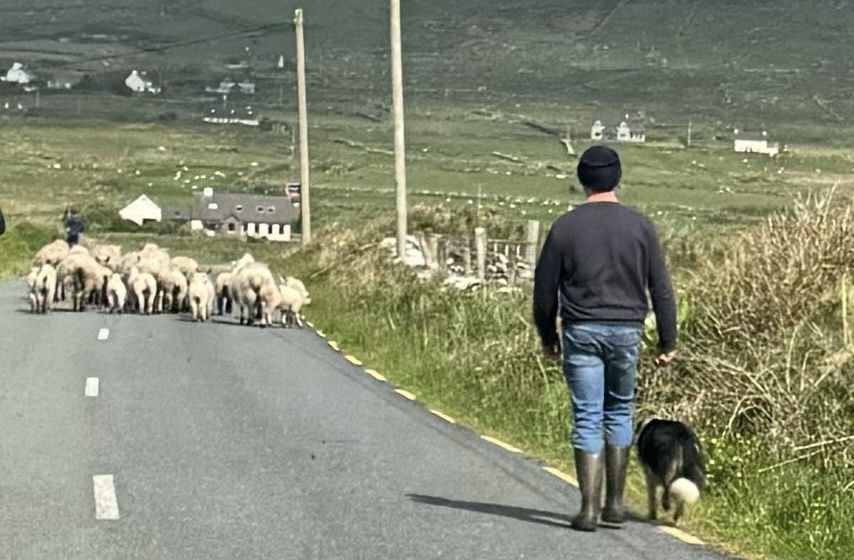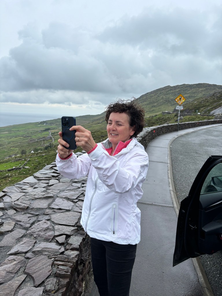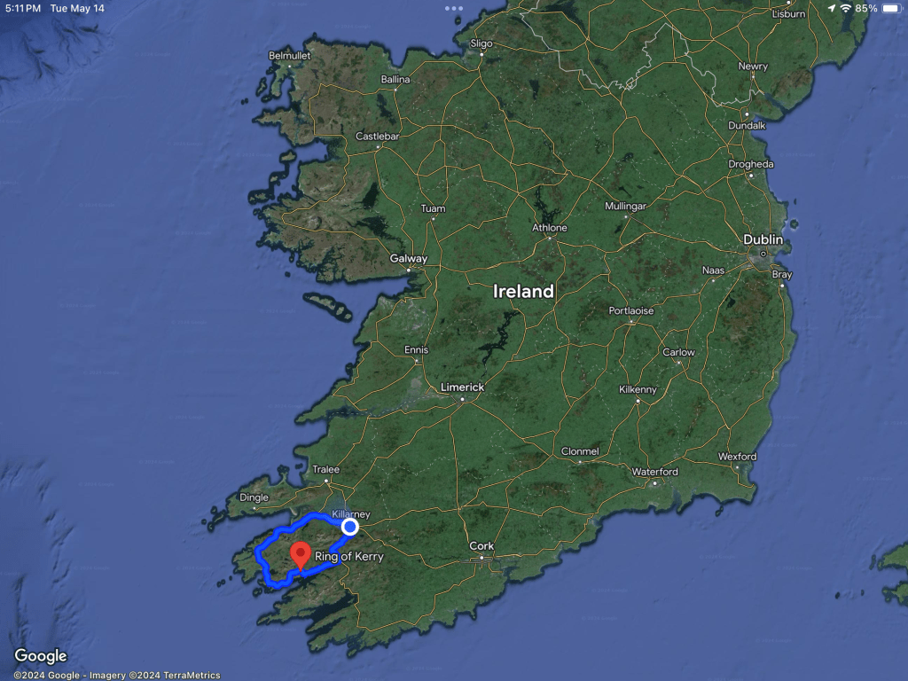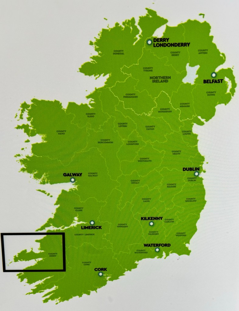 We set off in a very heavy rain storm with Peter at the wheel despite it being his birthday. We learned another aspect of the Irish road system. The “N” has been previously described. Below that is the “R” series which generously includes, most of the time, a painted centre line albeit with an inconsistent road width for two cars. Today it was welcome to the next level down, the “L”, which is lineless, one point something cars wide and challenging. We endured a short L spell just to get onto the peninsula and thought, whew, that’s done. Little did we know!