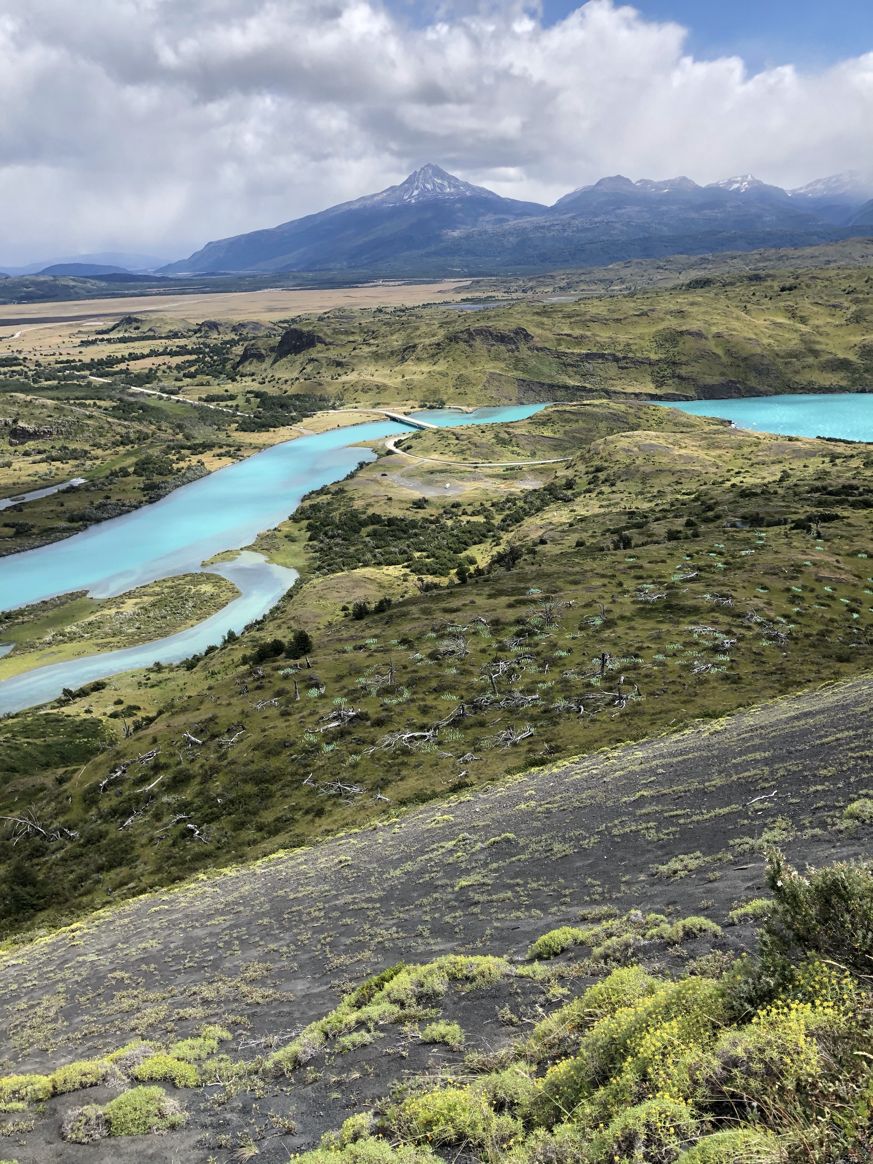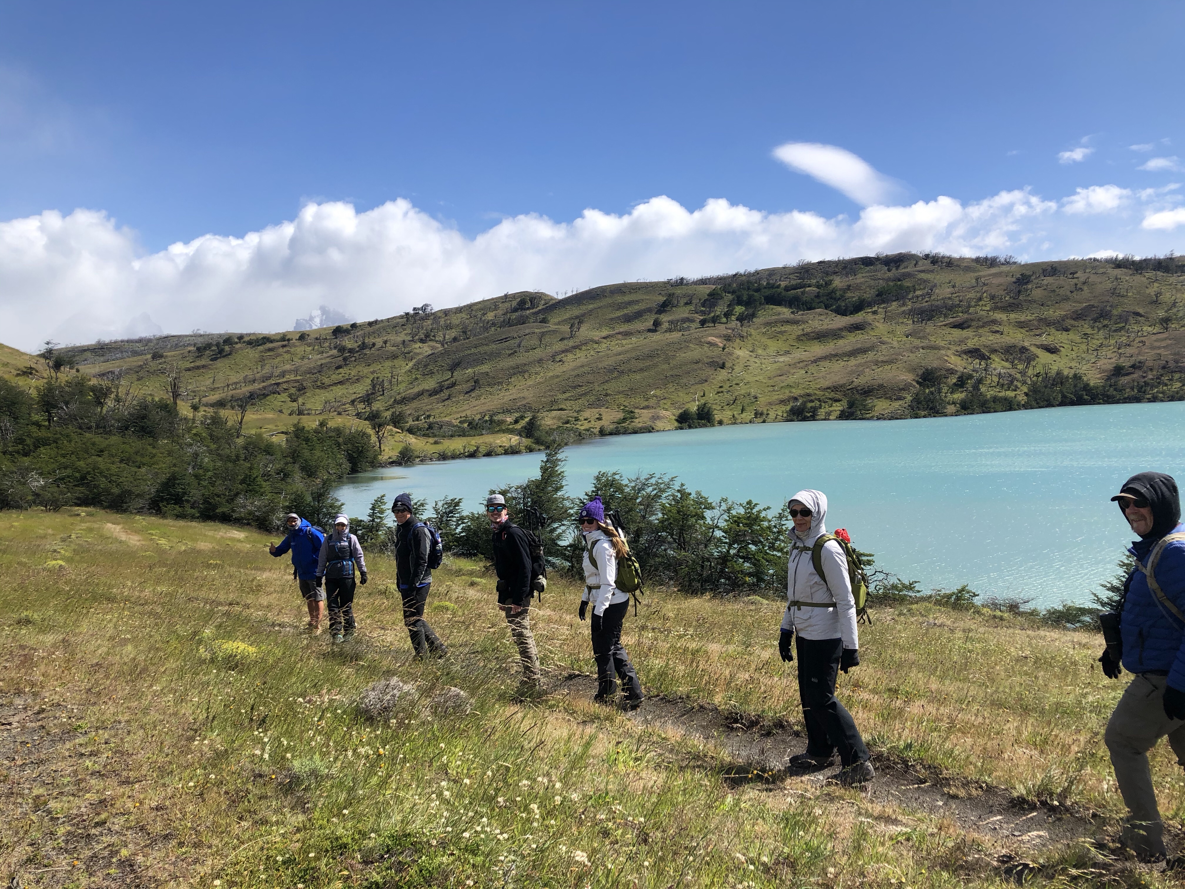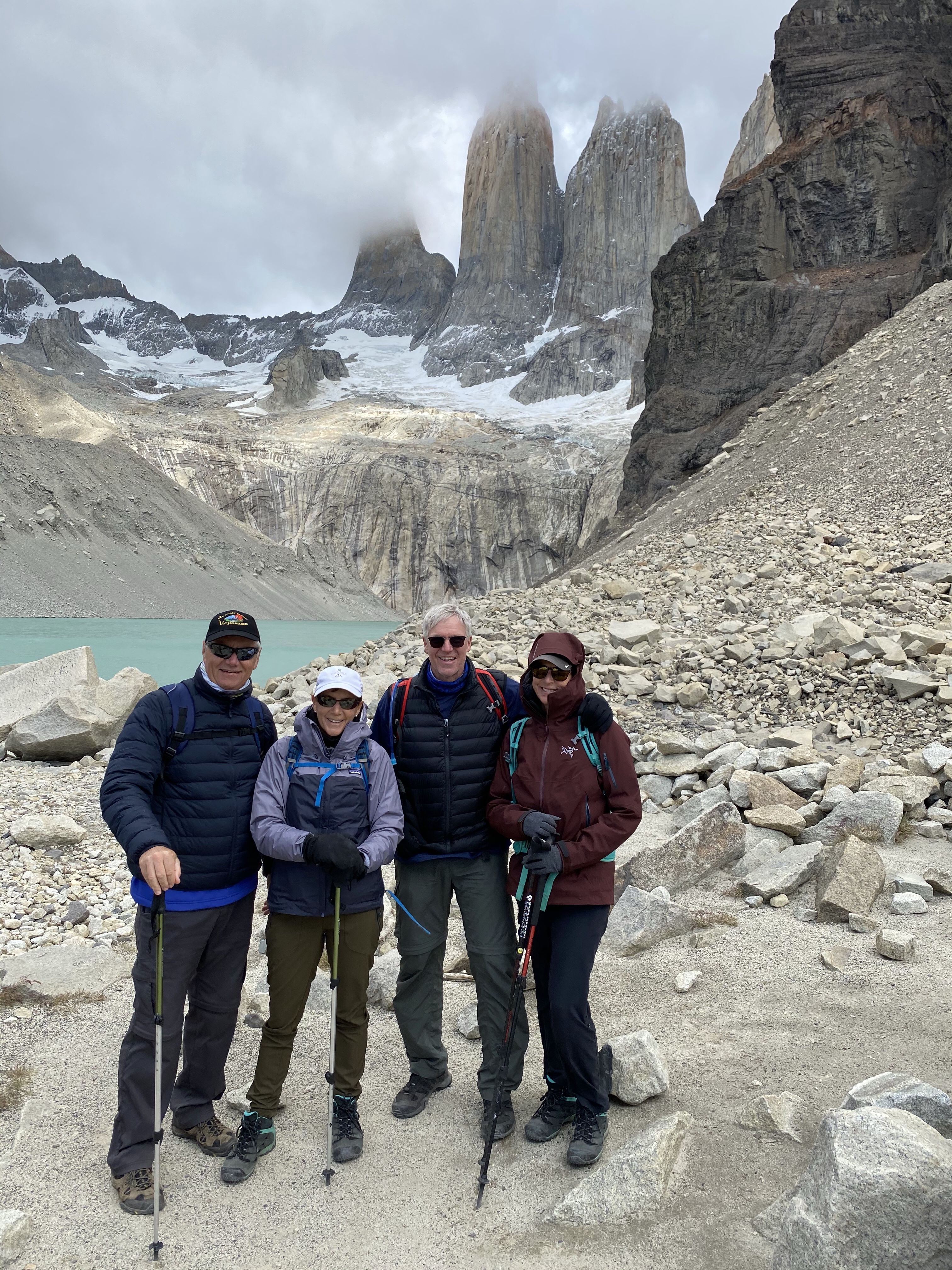 Finally we crested the last ridge and a huge surprise greeted us. There is a turquoise lagoon at the base of the mountains. It is the result of the glacier melting so good news, bad news. Estimates are that in less than 35 years the glacier will be gone and with it, the water source for the lagoon.