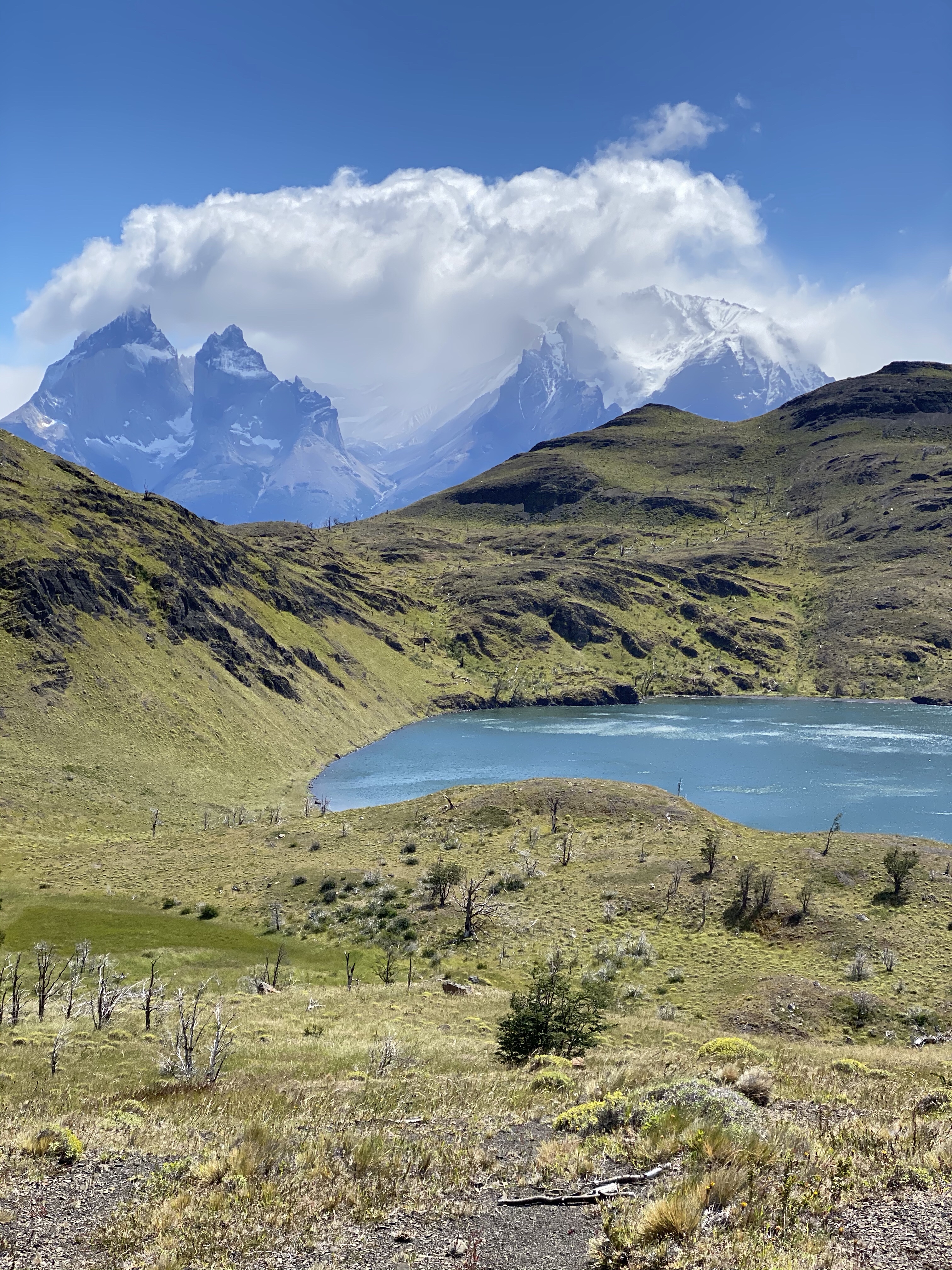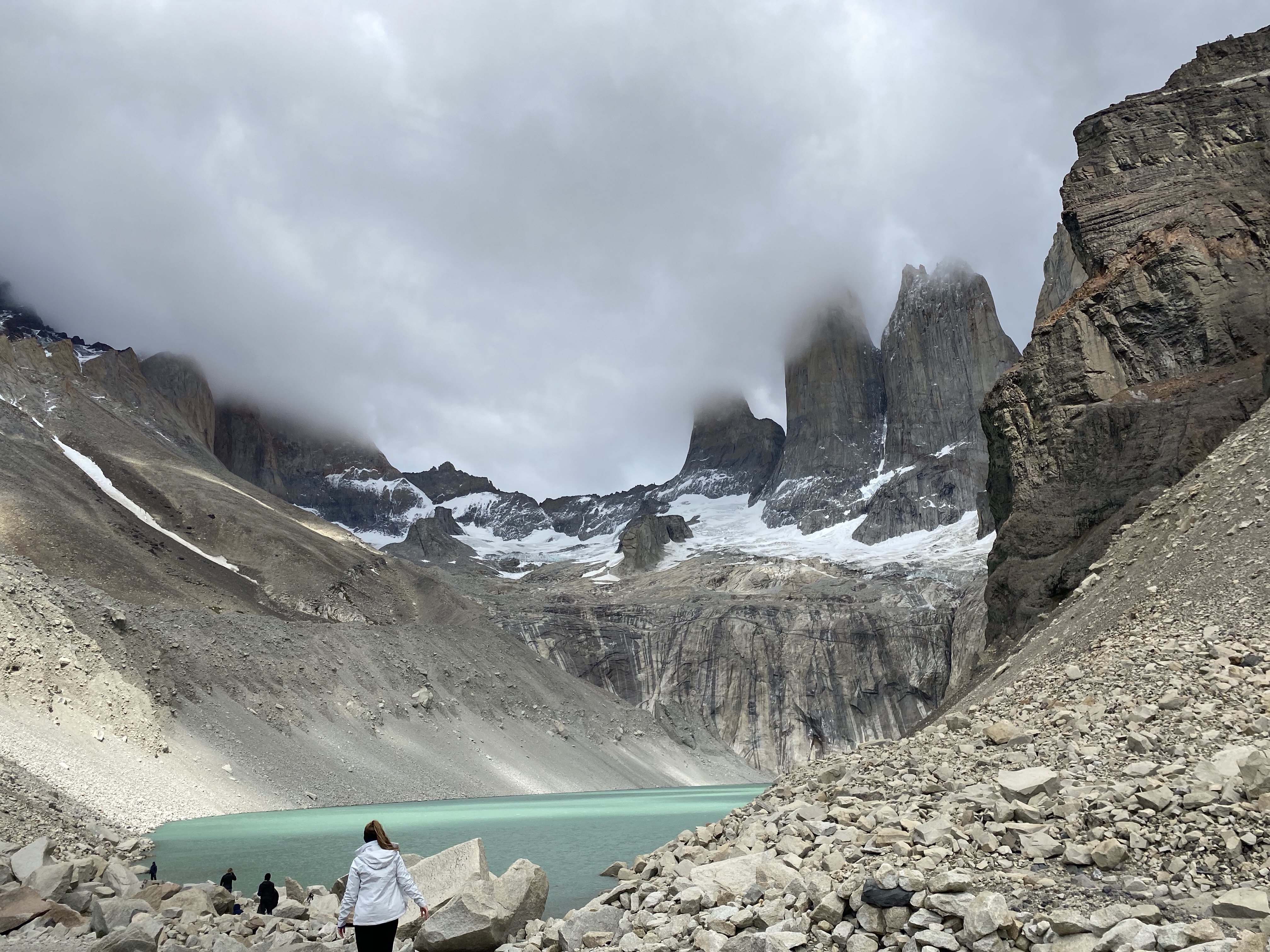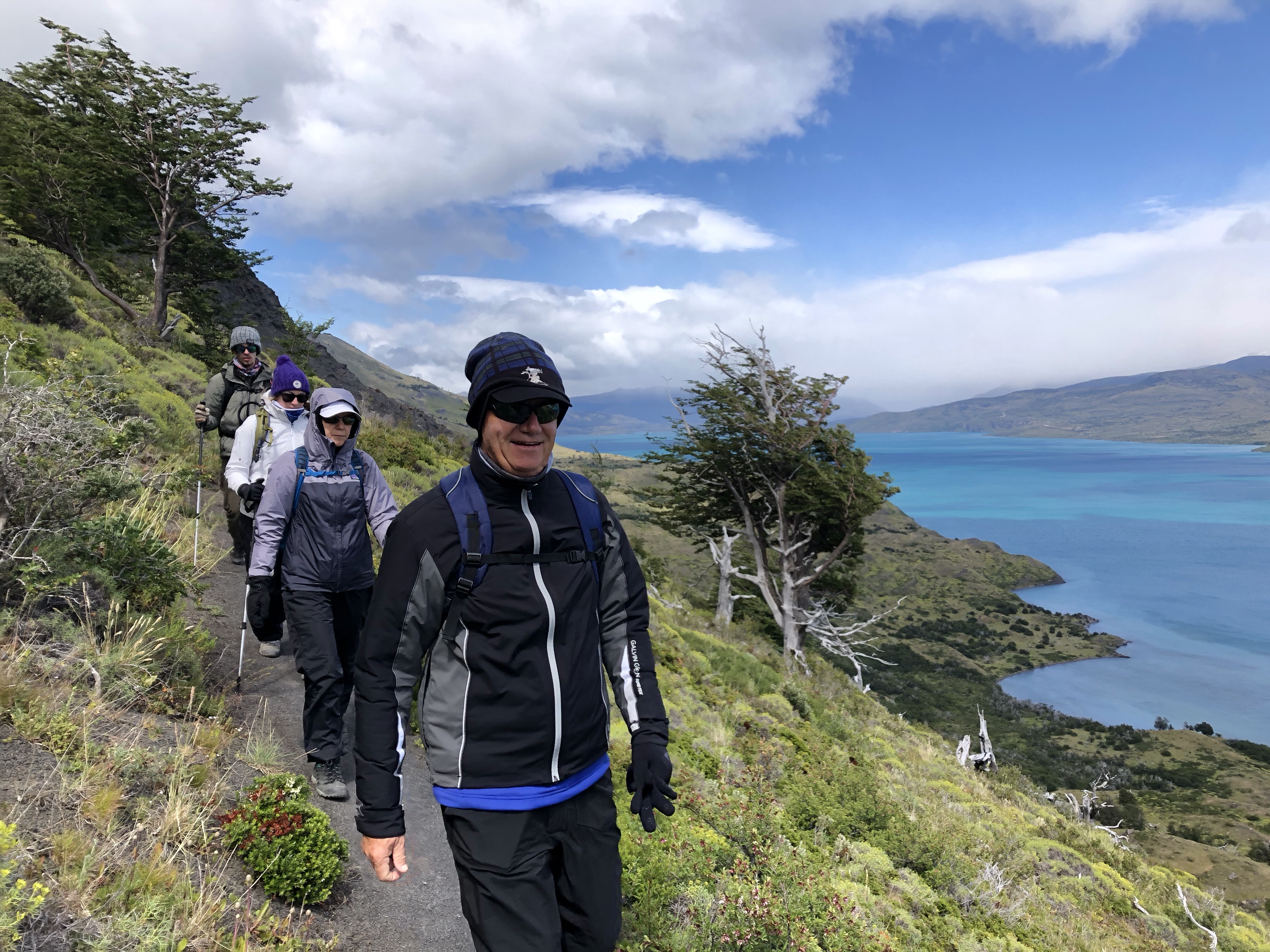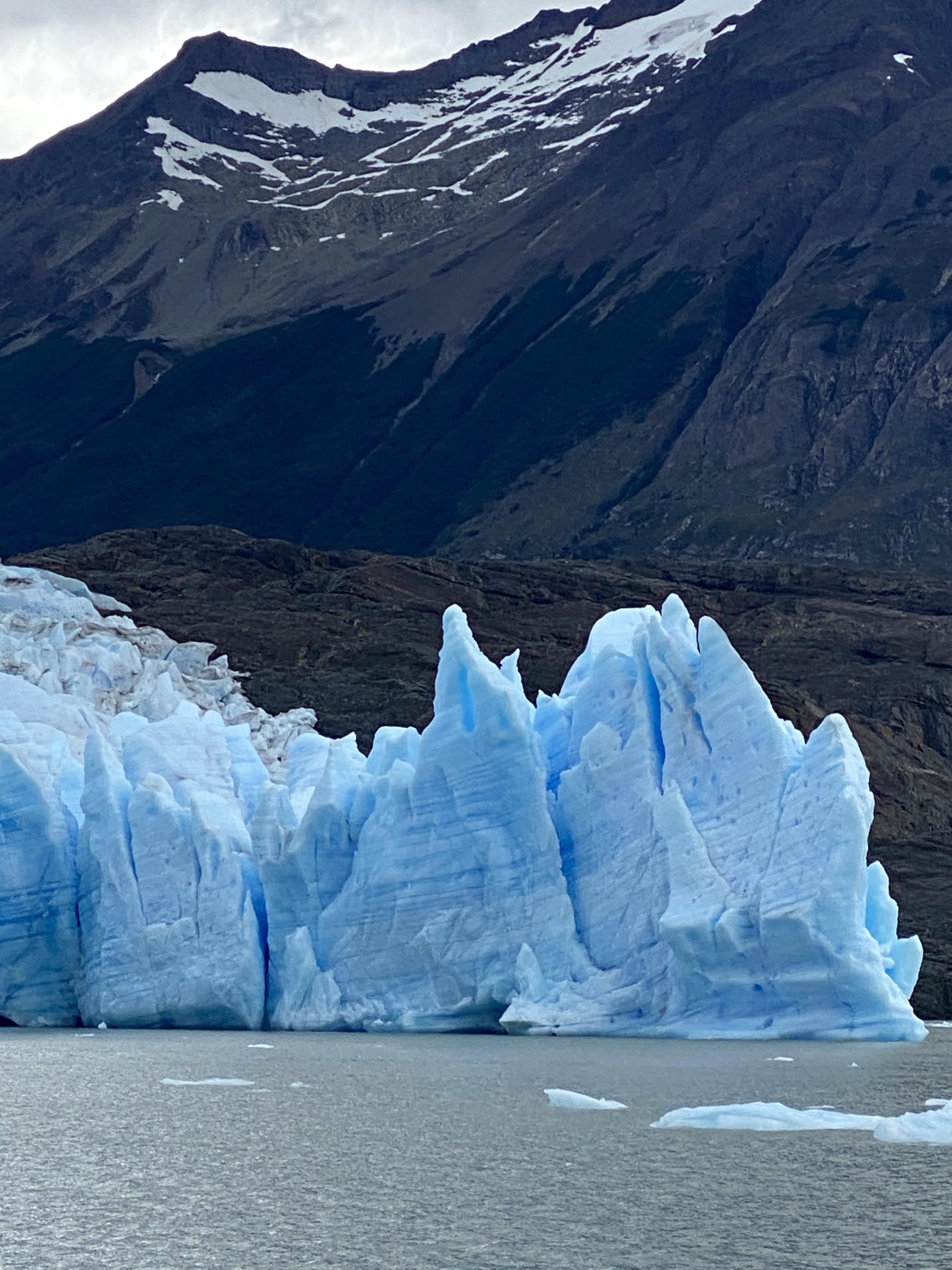 Finally we crested the last ridge and a huge surprise greeted us. There is a turquoise lagoon at the base of the mountains. It is the result of the glacier melting so good news, bad news. Estimates are that in less than 35 years the glacier will be gone and with it, the water source for the lagoon.