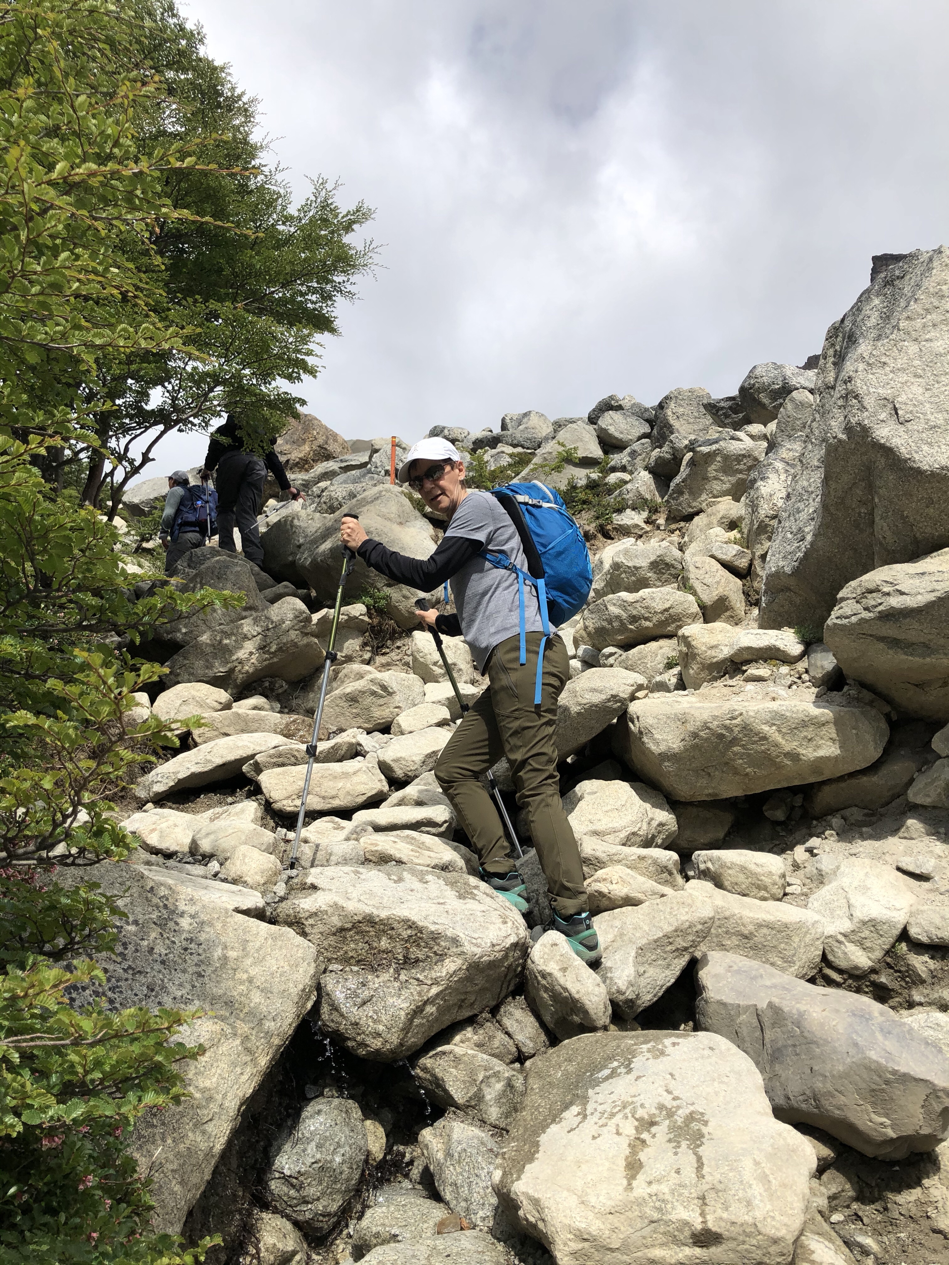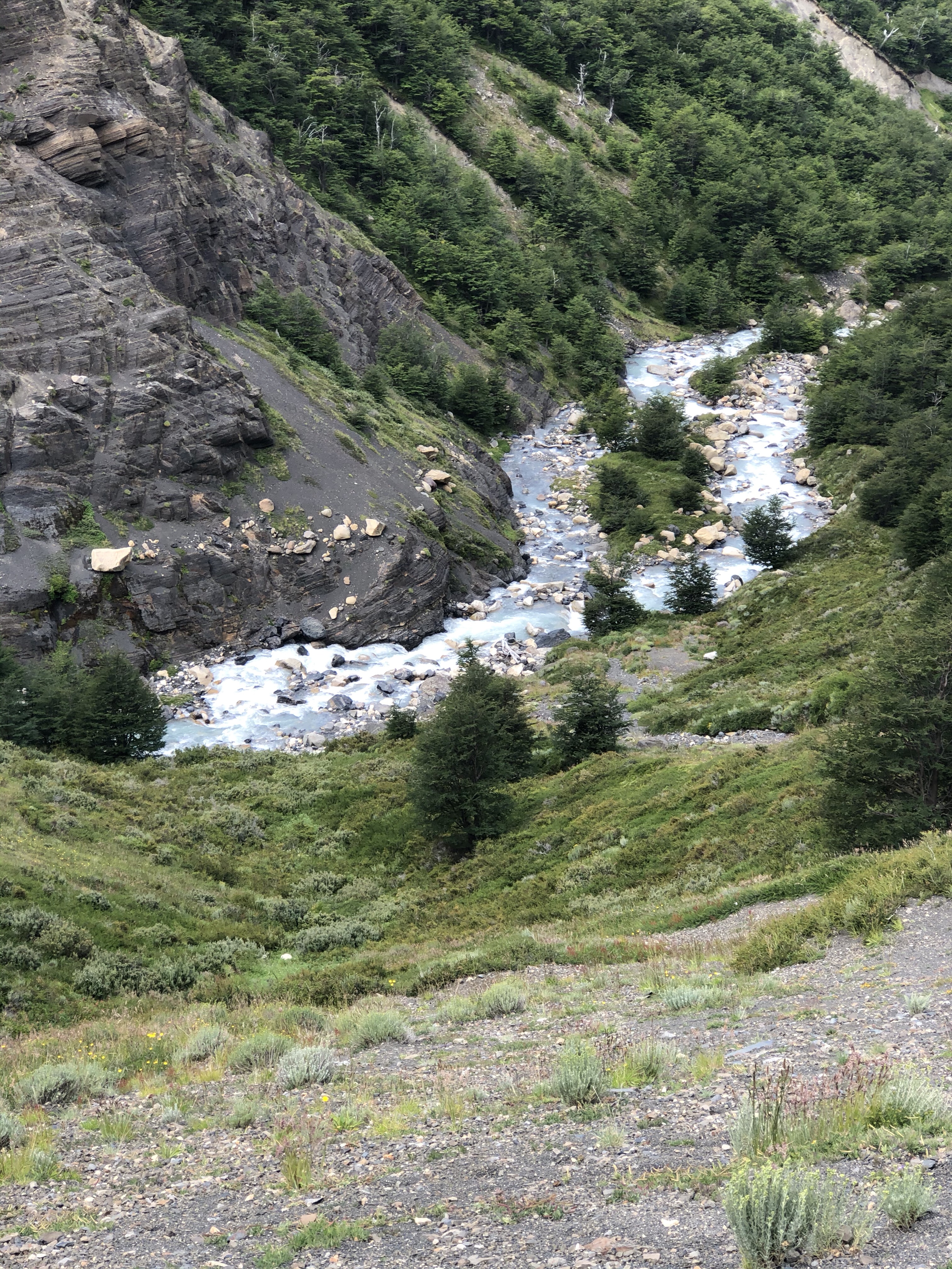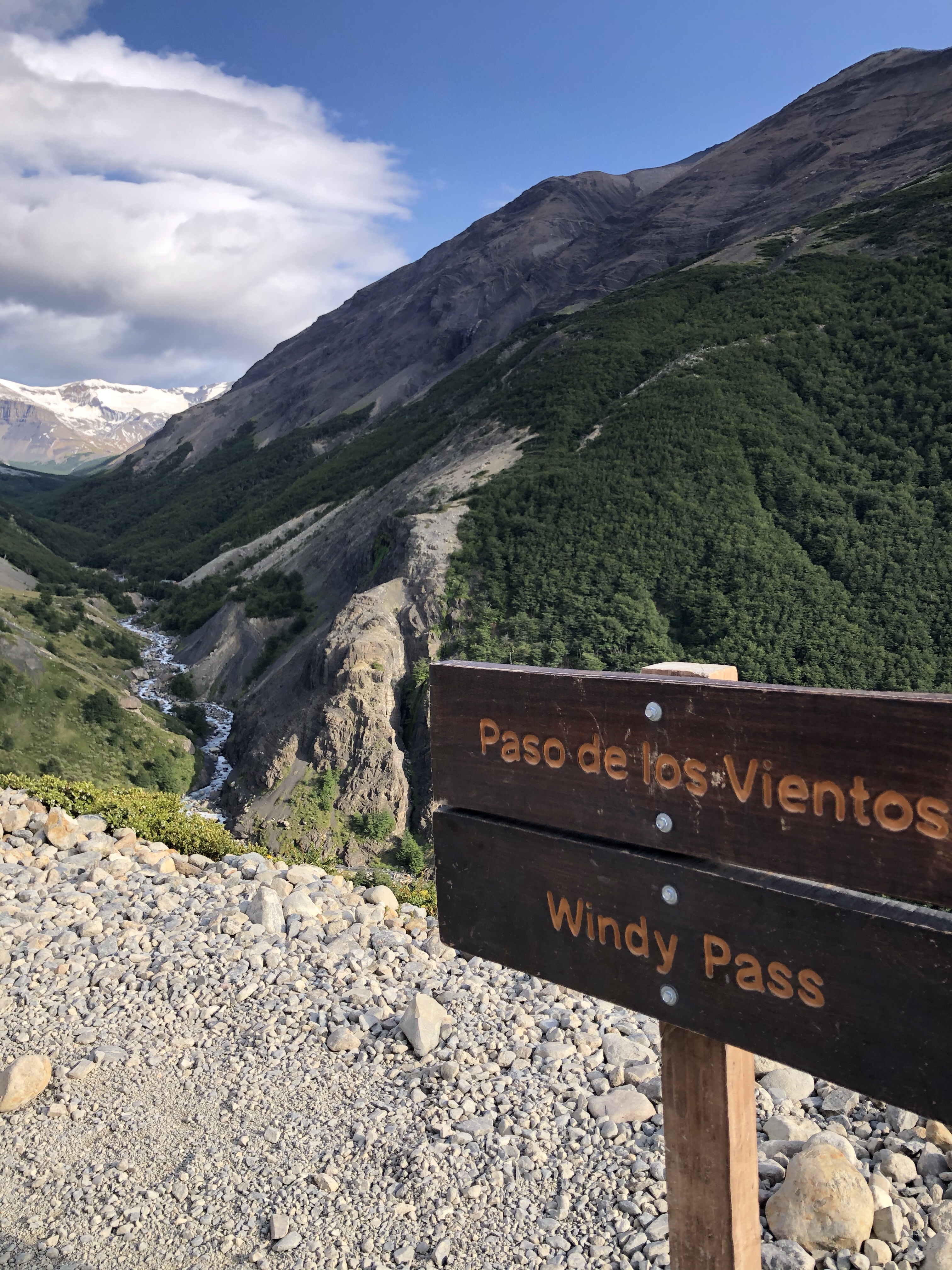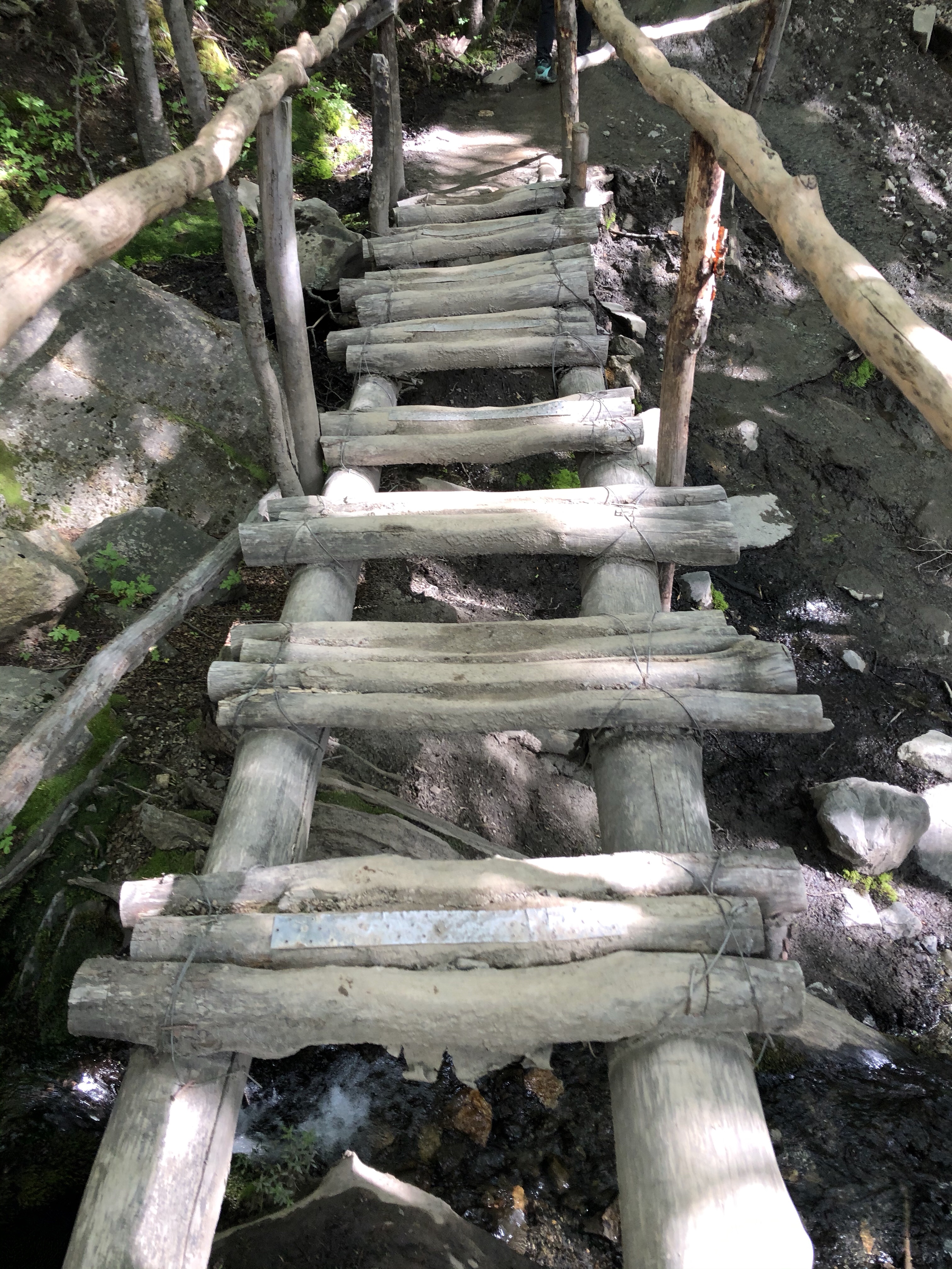 As we climbed, so did the river highlights. Numerous streams meant hopping across rocks, logs and sketchy looking bridges. We crossed the main river a couple of times as well and the waterfalls were spectacular. At the mid point is Windy Pass where the weather can dictate going forward or retreating. Winds over 150 Km/hr have been recorded here. Fortunately it was only a breezy day so on we went.
