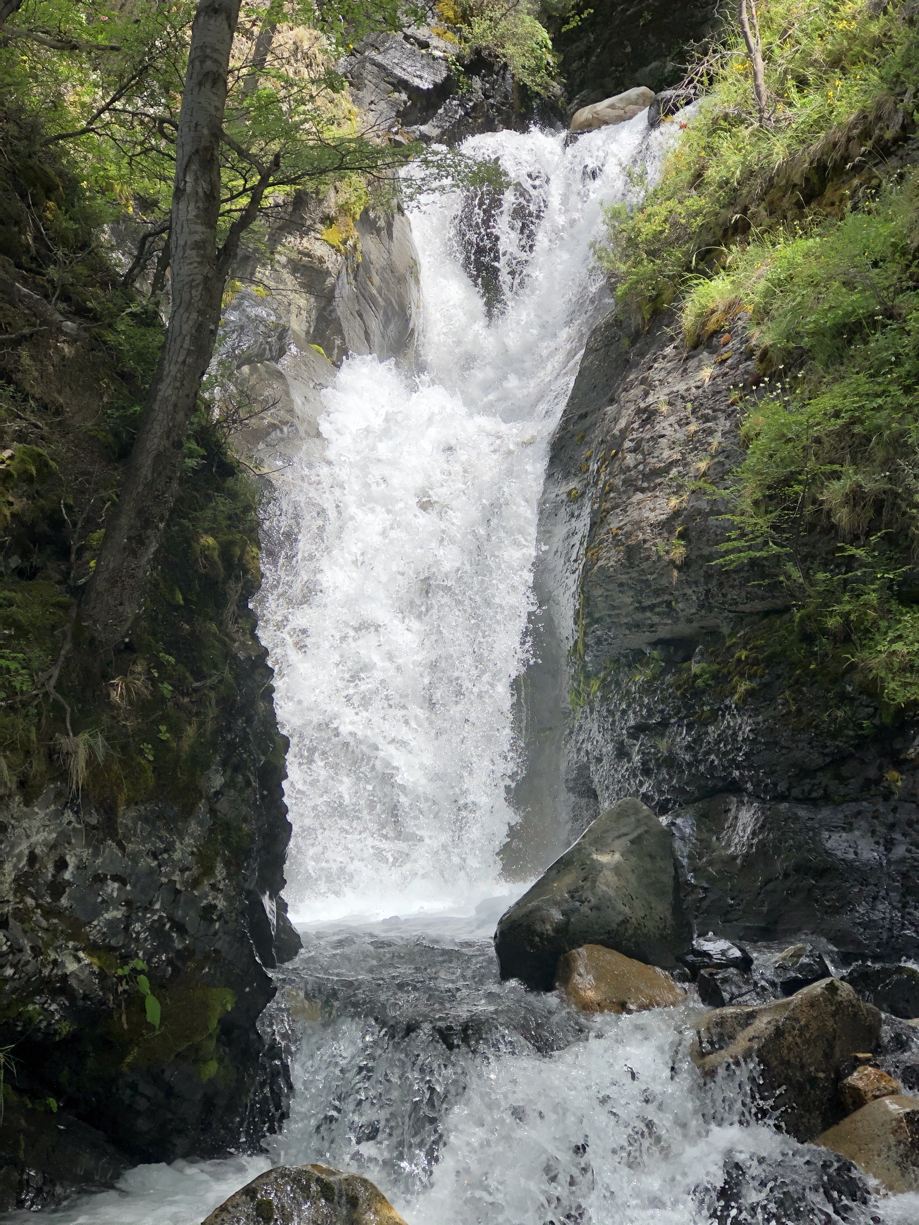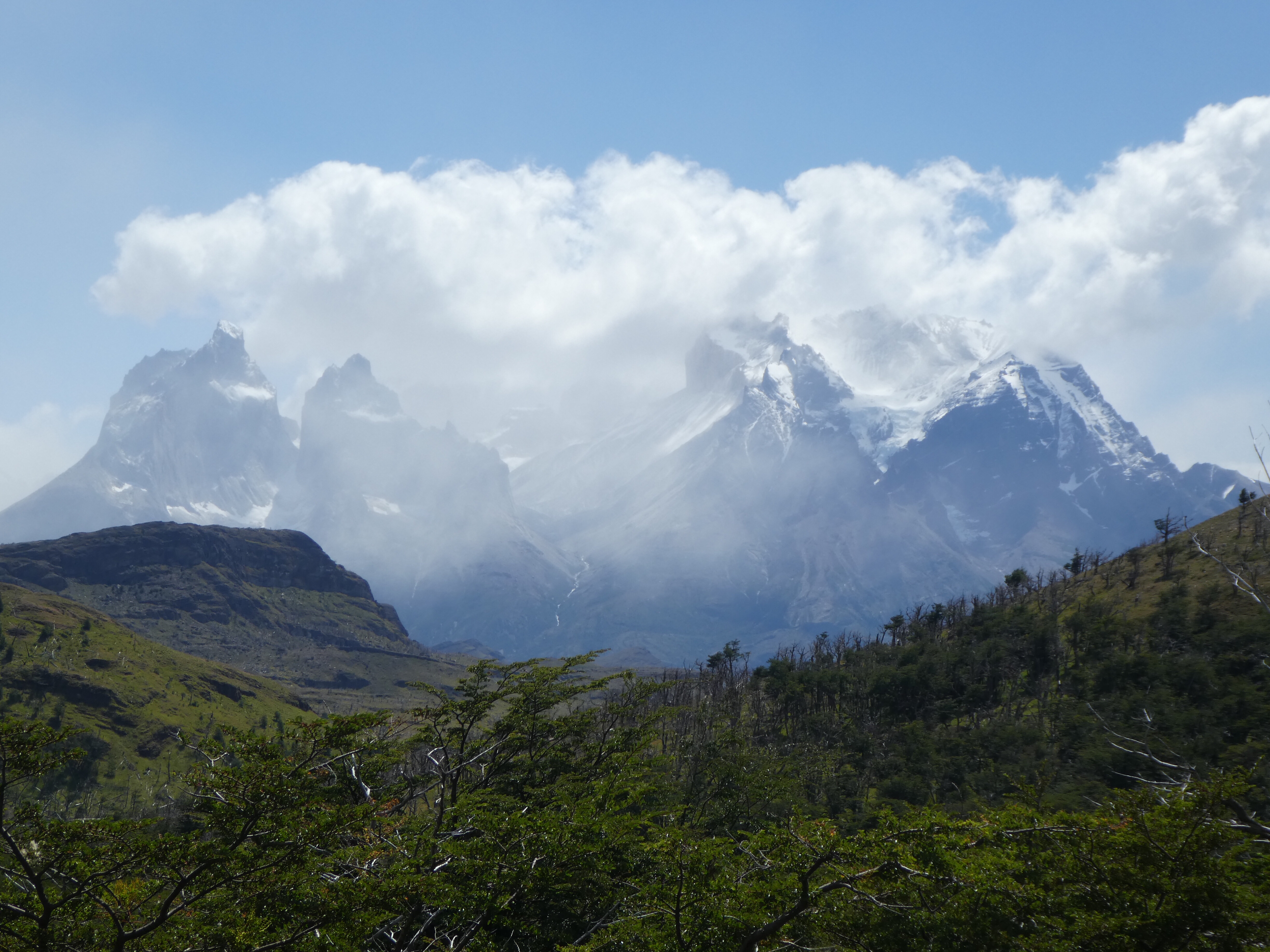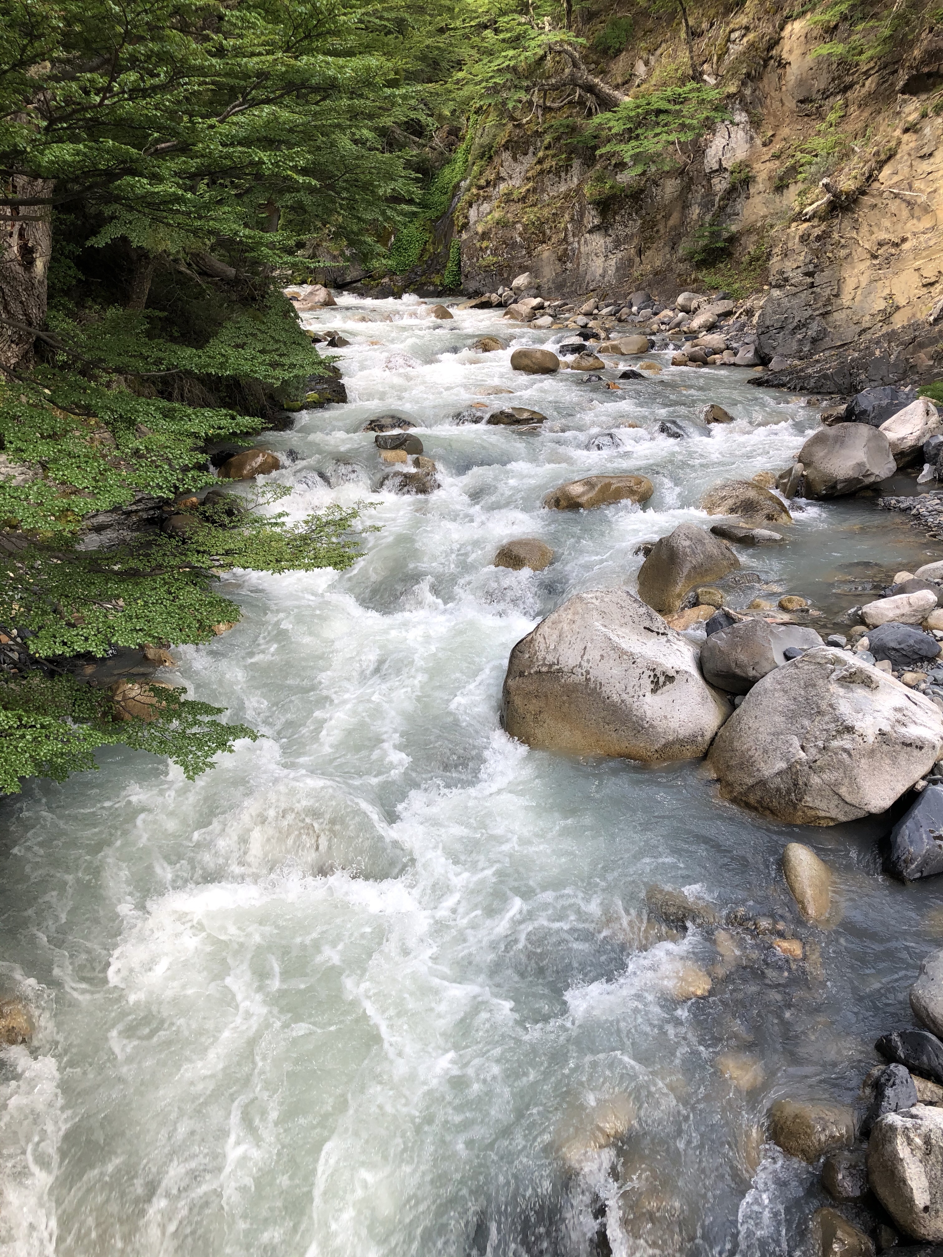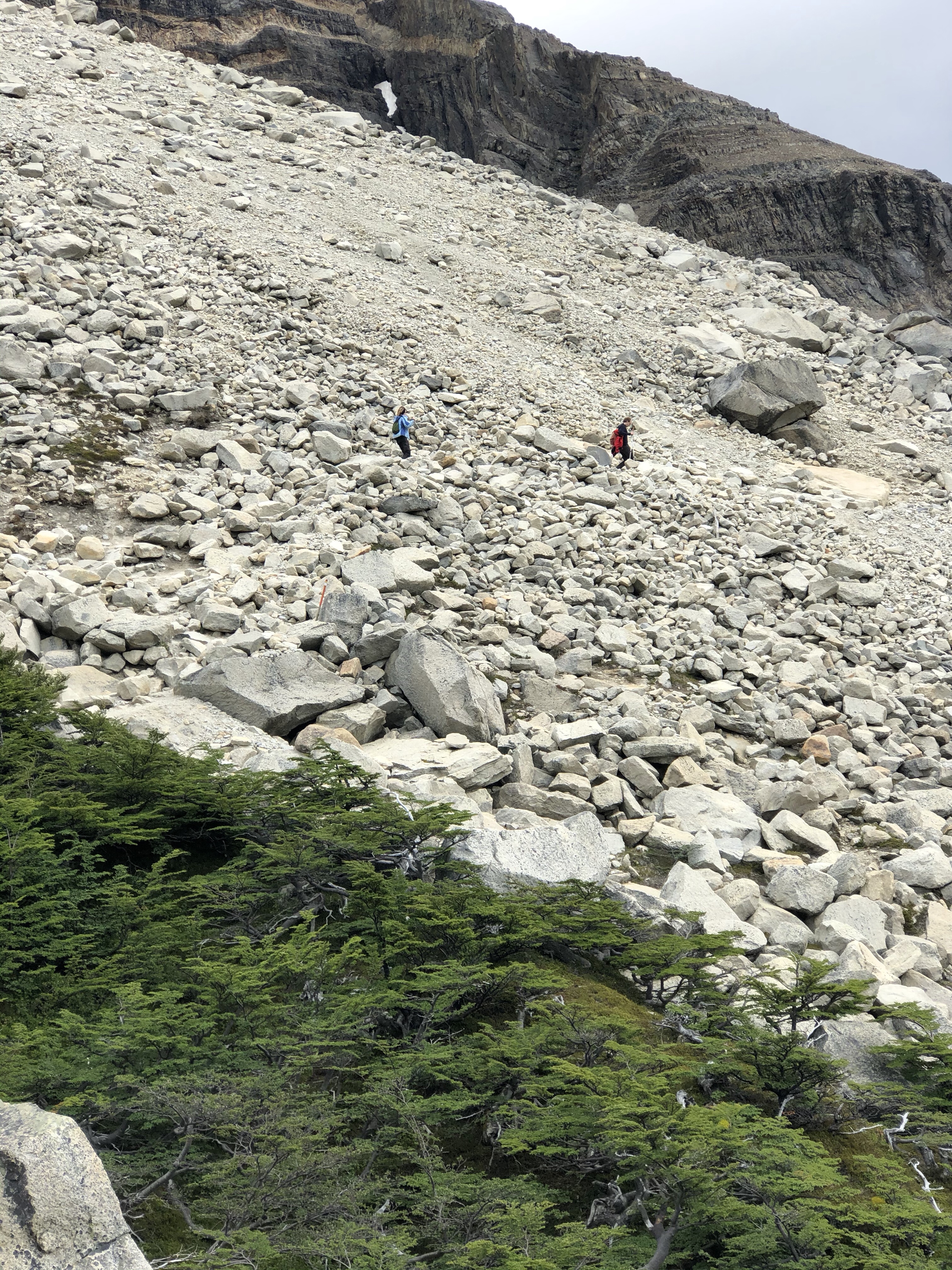 As we climbed, so did the river highlights. Numerous streams meant hopping across rocks, logs and sketchy looking bridges. We crossed the main river a couple of times as well and the waterfalls were spectacular. At the mid point is Windy Pass where the weather can dictate going forward or retreating. Winds over 150 Km/hr have been recorded here. Fortunately it was only a breezy day so on we went.